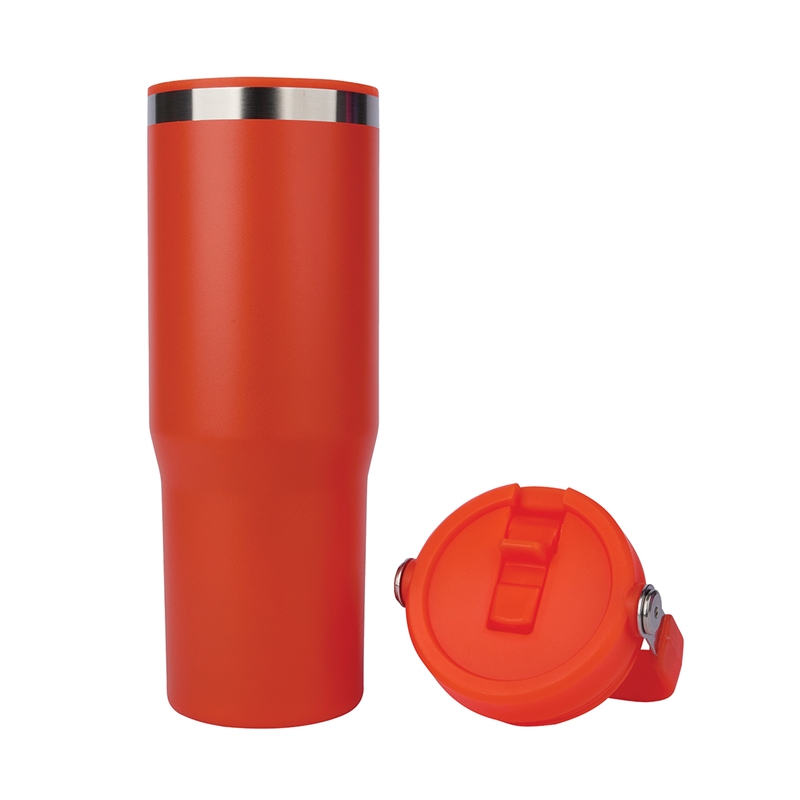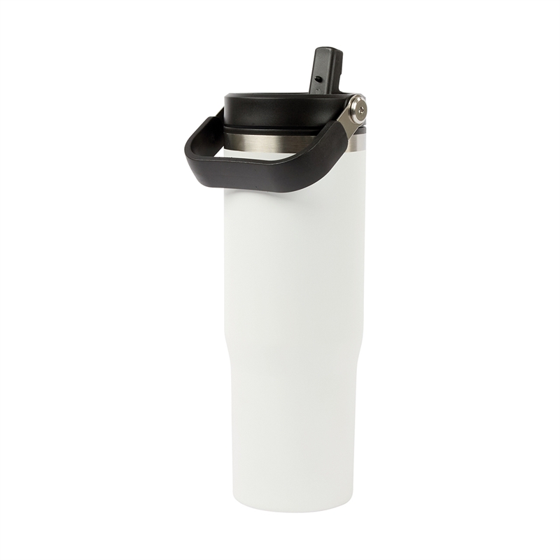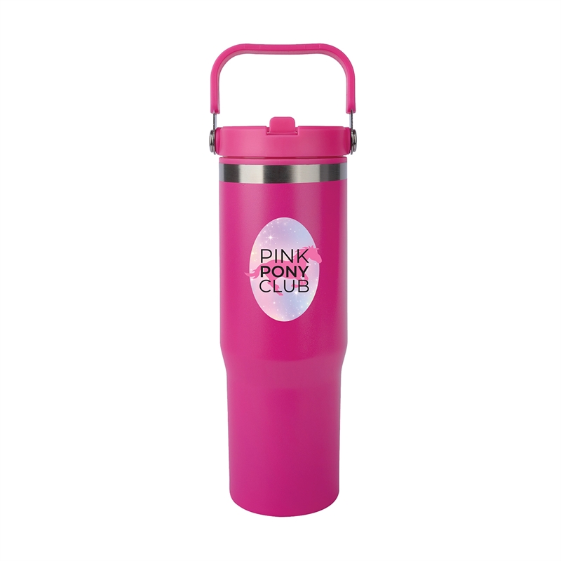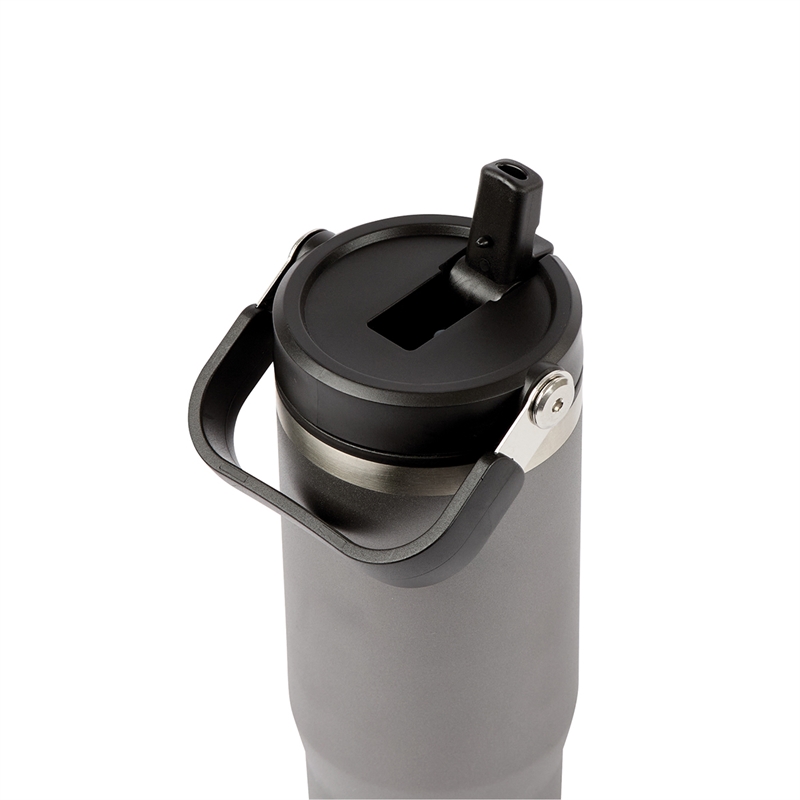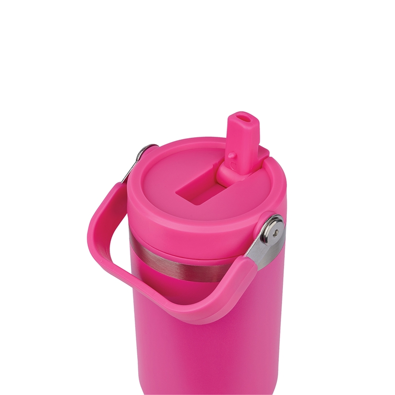 The Ebson 30 oz. Water Bottle is designed to keep you hydrated all day. Featuring a stainless steel outer wall and a polypropylene inner wall, its light weight and keeps liquids cold for an extended period of time. The convenient flip straw allows for easy sipping and seals securely to make the bottle leak-resistant. With a hinged swing handle, it’s easy to carry from your desk to the campsite, and its tapered base fits most standard car cup holders for hassle-free travel. The durable powder-coated finish helps prevent scratches, and it’s both FDA compliant and BPA-free.
