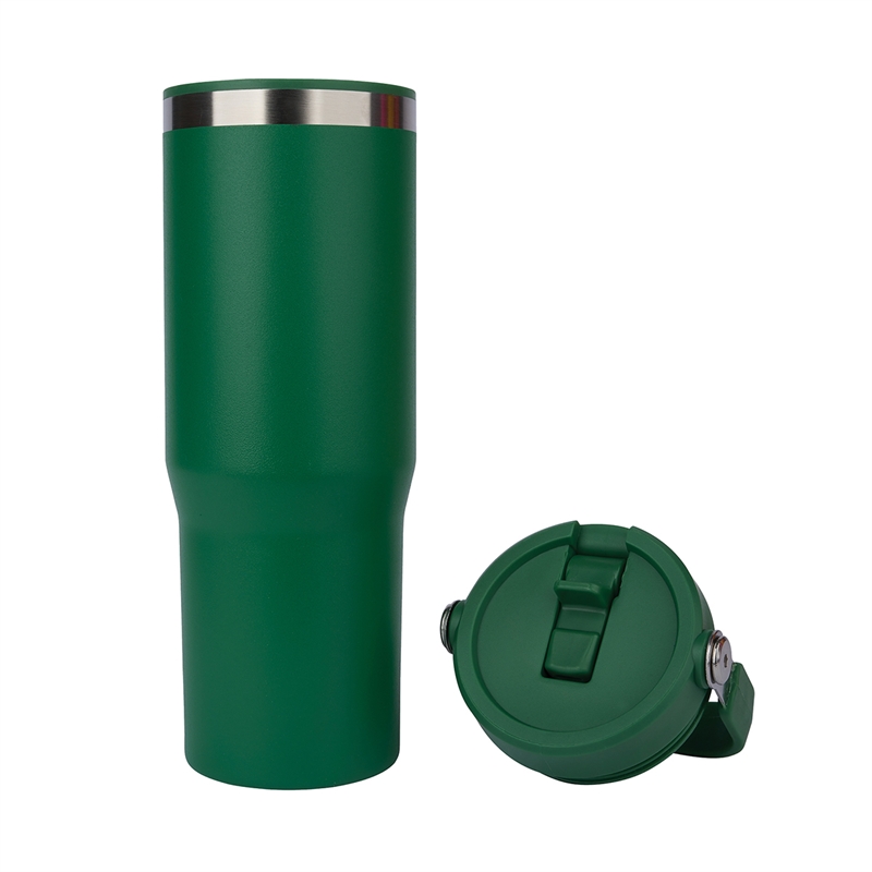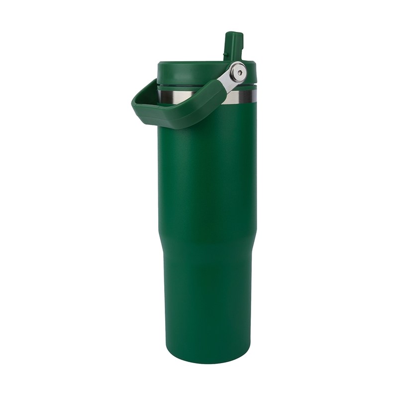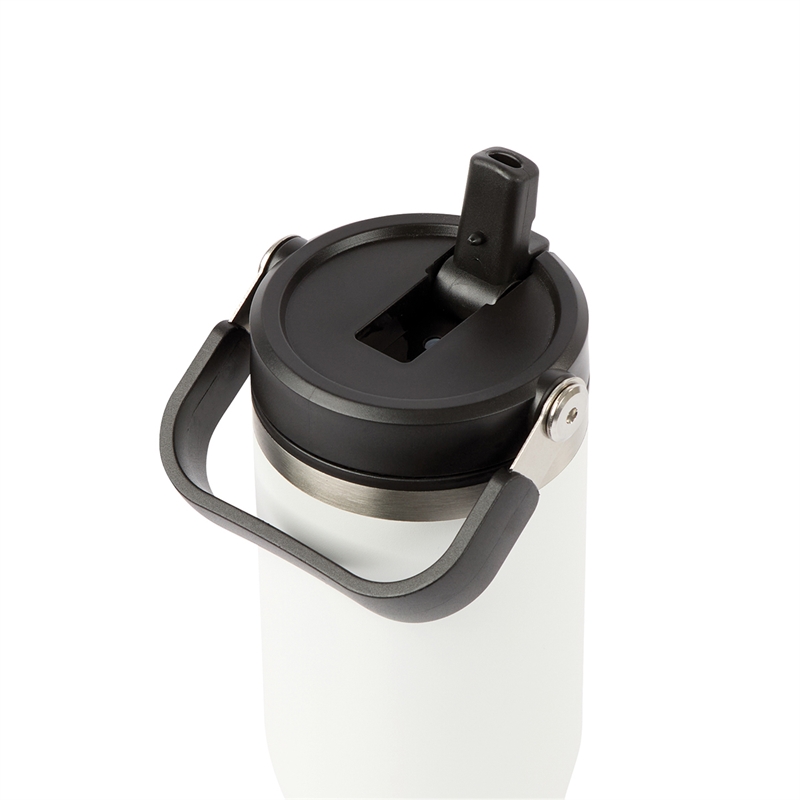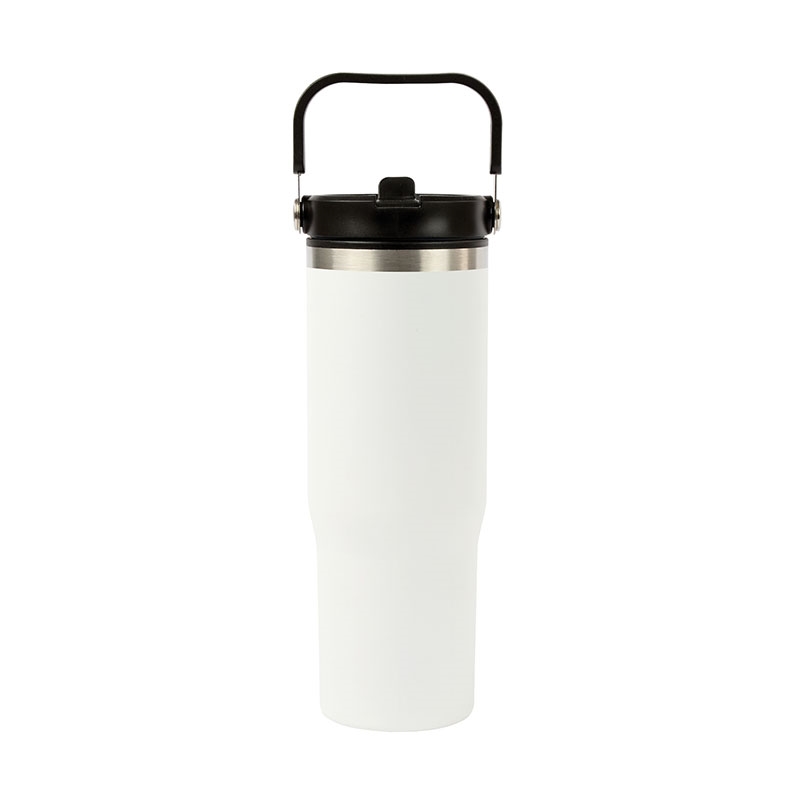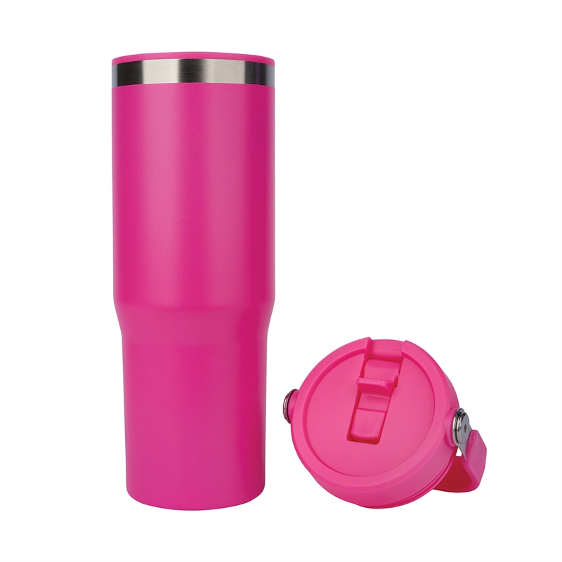 The Ebson 30 oz. Water Bottle is designed to keep you hydrated all day. Featuring a stainless steel outer wall and a polypropylene inner wall, its light weight and keeps liquids cold for an extended period of time. The convenient flip straw allows for easy sipping and seals securely to make the bottle leak-resistant. With a hinged swing handle, it’s easy to carry from your desk to the campsite, and its tapered base fits most standard car cup holders for hassle-free travel. The durable powder-coated finish helps prevent scratches, and it’s both FDA compliant and BPA-free.
